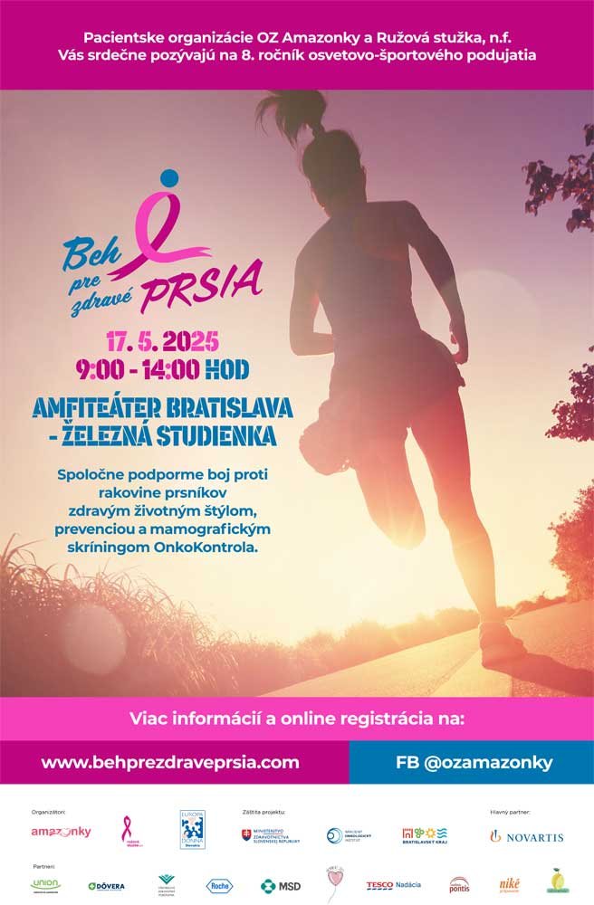 Vaša podpora – či už materiálna, organizačná, mediálna alebo morálna – významne prispela k úspechu podujatia, ktoré spája osvetu, pohyb a solidaritu s onkologickými pacientkami. Aj vďaka vám sme mohli zabezpečiť kvalitné zázemie, príjemnú atmosféru, bohatý program a silný spoločenský odkaz – že prevencia, včasná diagnostika a podpora pacientok majú zmysel.